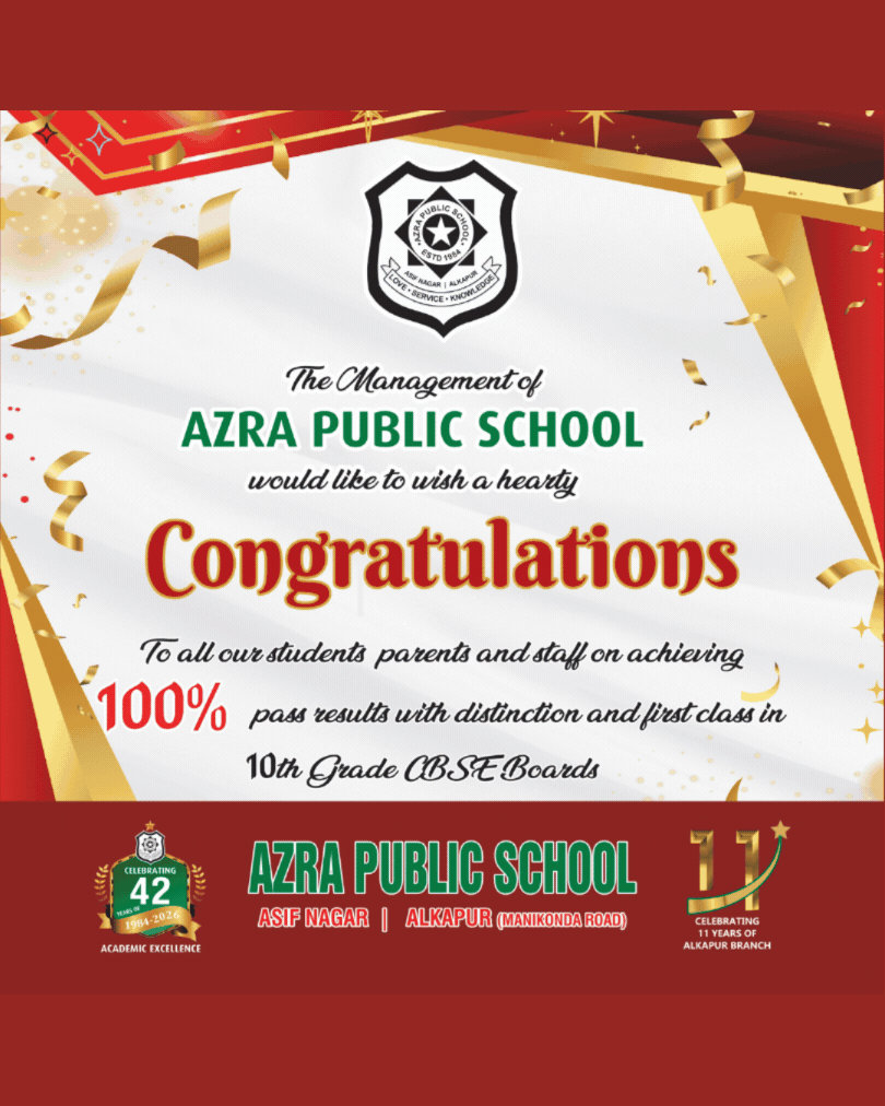 Azra Public School-Alkapur motive is to lay a strong concrete foundation from the primary level and prepare students for life -helping them to become confident, responsible, reflective, innovative and engaged. They are shaped into individuals with lasting passion for learning and ready to take the demands of tomorrow’s competitive world.